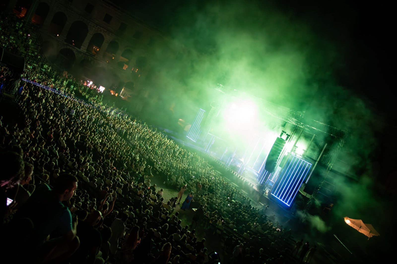 Ovaj potez dobio je velike ovacije publike koja je oduševljeno, a ponekada i hipnotički gledala što se ispred njihovih očiju upravo događa. Laseri pršte na sve strane, svjetlosni efekti doslovno osvjetljavaju pulsku Arenu pod vedrim zvjezdanim nebom, a Jean-Michel Jarre se zabavlja kao nikada. Često je govorio – “hvala Pula”, a ono što je zanimljivo, većina njegovih govora i poruka, kao i spomenuta poruka Edwarda Snowdena, bili su prevedeni na hrvatski jezik. Pohvalno, jer nekada je teško na stranom jeziku domaćoj publici prenijeti poruku onako kako to priliči. Bez određene cenzure.