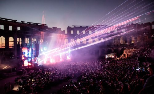 Koncert u Areni Pula dio je nove turneje, zapravo njegove prve turneje u skoro 10 godina, a ponovno je birao posebne lokacije na kojima će njegova glazba dosegnuti neku novu razinu. Osim Vespazijanovog hrama u Puli posjetit će i legendarne Pompeje i Piazzu San Marco u Italiji, ali i Royal Palace u Bruxellesu. U pitanju je europska turneja i na njoj nastupa isključivo solo kao DJ za čijim pultom se nalaze razne klavijature, sekvenceri, Moogovi, synthovi, digitalni plug inovi i softwarei, kao i oscilatori, ritam mašine te sampling padovi. A zvuk koji je izlazio iz svih tih uređaja mijenjao se kako je koncert odmicao, od ambijentalne glazbe, preko njegovog jedinstvenog elektroničkog zvuka do techna i (psy) trancea. Jean-Michel je ove večeri bio opaki DJ koji u 76. godini života uživa kao neki mladić, a oko njega veliki broj hipnotizirane publike koja je upijala svaki odsvirani ton i vizualni show koji je priredio tim okupljen oko legendarnog Francuza. Laseri, reflektori, LED ekrani, specijalni vizuali, roboti – svega smo se nagledali tijekom ovog impresivnog nastupa, a nisu izostale i neke važne poruke, o glazbi, o Europi, o Hrvatskoj, ali i stanju u društvu. Čak i umjetnoj inteligenciji pa je u šali (ali ima tu i puno istine) prilikom izvođenja pjesme “Robots Don’t Cry (Movement 3)” malo zaletio s nazivom jer se ova pjesma komotno može zvati “Robots Don’t Cry So Far”.