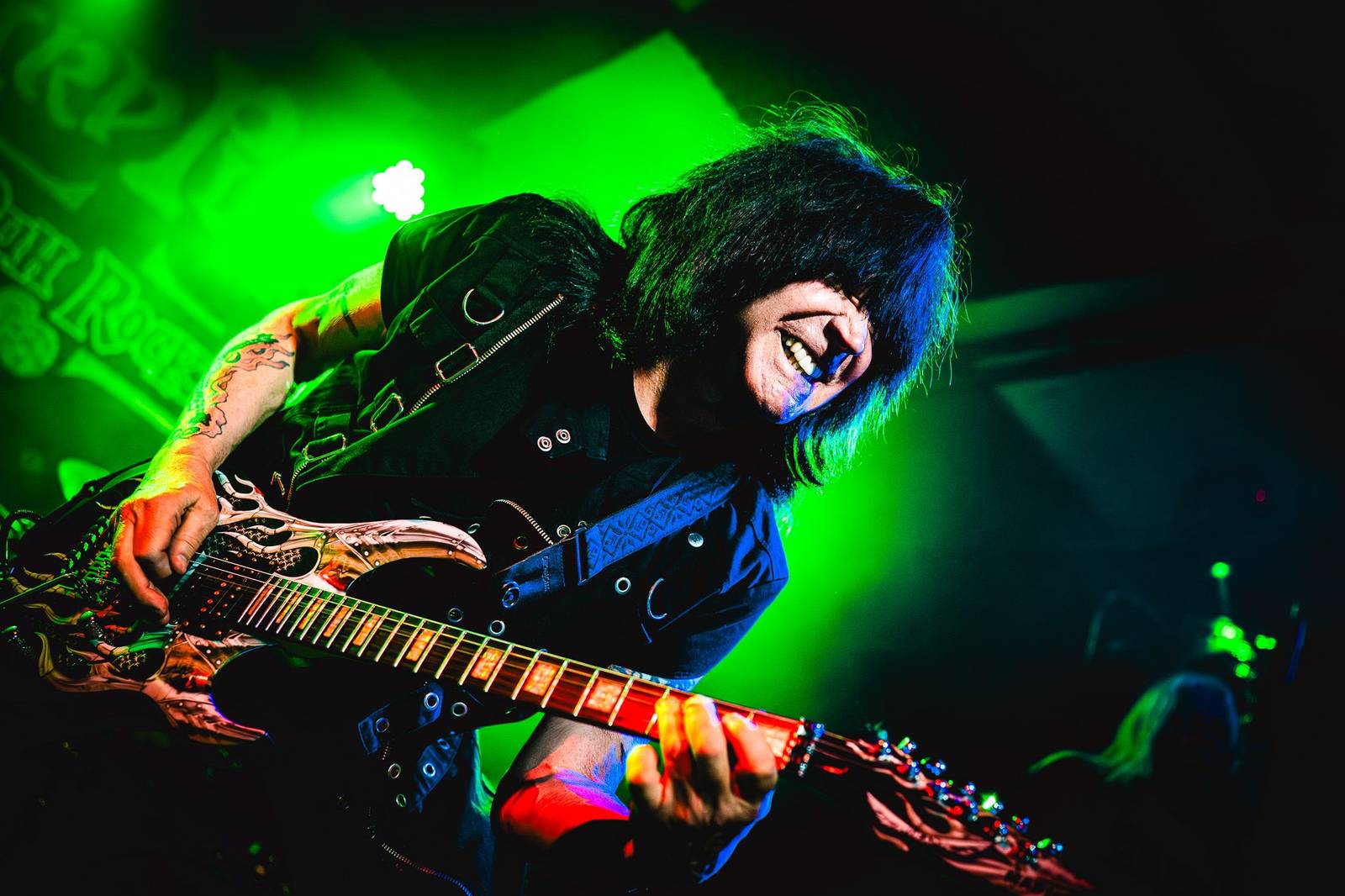 Iako je ovaj generalni gitaristički megaspektakl svakako imao “metalni predznak”, svirku je otvorio mladi Meksikanac s američkom adresom u Los Angelesu, umjetničkog imena Johnny Nasty Boots. Njegov izričaj je prljavi blues rock prema tvrđem rocku. Sama svirka solidno kvalitetna i iznadprosječna, ali ipak imam zamjerku. Pjesme, ovaj tekstualni dio, očajno monoton u smislu da ne prati samu svirku i melodiju. Kao nekakav svojevrsni naporni haiku i recitiranje uz muziku. Ne uklapa se, on kao takav, iako talentirani gitarist, bolje da se mani mikrofona u vokalnom smislu, osim možda kao back vokal. Treba mu pošteni vokal, ali i tekstopisac, ili barem netko tko će toj njegovoj “salati riječi” dati strukturu, formu te glavu i rep. No, interakcija s publikom, energija, svirka kao što rekoh i sve ostalo, na nivou kako treba biti. Njegov set je ionako bio za zagrijavanje i relativno kratak (neću reći i sladak radi, jelte, vokalnog dijela), a svirka je počela poprilično rano, oko 20:30 h i bio je gotov do cca 21:00 h.
